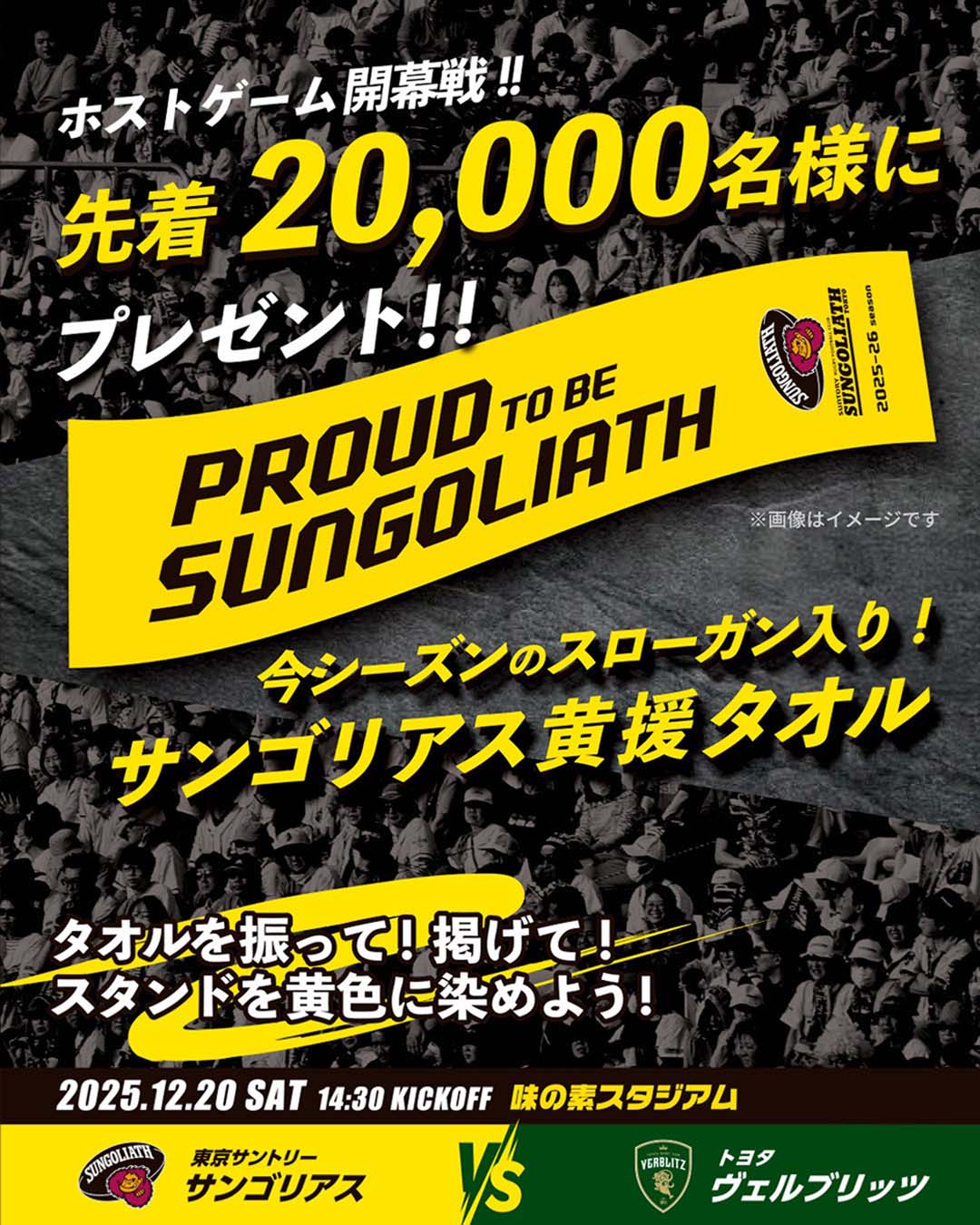 「サンゴリアス黄援タオル」を先着20,000名様にプレゼント!
