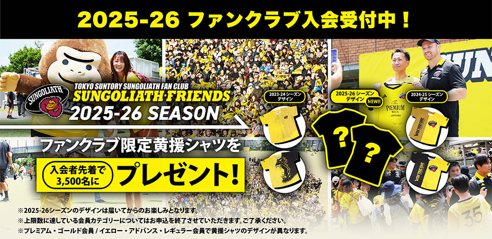 「サンゴリアス・フレンズ」仲間入りして、サンゴリアスを黄援しよう!