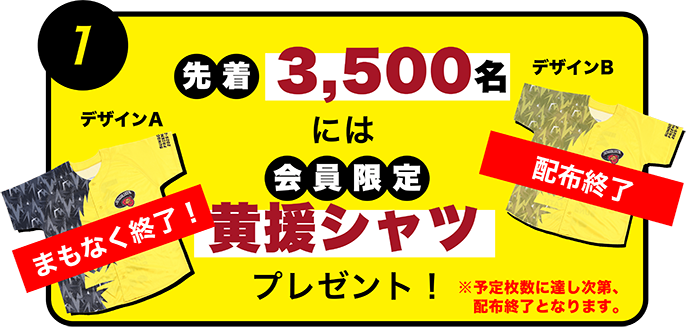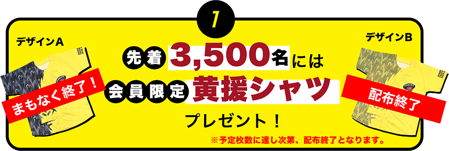 先着の特典グッズである「会員限定の黄援シャツ」デザインBは終了しました。